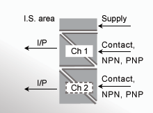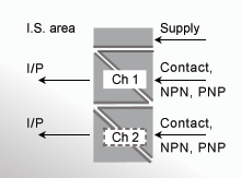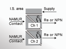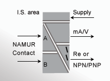 - Schnittstelle für NAMUR-Sensoren und Schalter