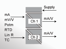 - Eingang für uni-/bipolare DC Strom- und Spannungssignale