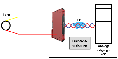 Det opnås ved at måle termoelement- eller RTD-signalet direkte ved føleren og herefter konvertere temperatursignalet til en 4…20 mA strøm. De 4...20 mA måles efterfølgende af et PLC-kort, som typisk har en indgangsmodstand på 250 Ω. Dette vil eliminere fejl som følge af EMI.