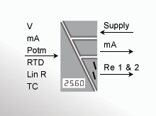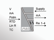- Ingresso per mA, V, Ohm, RTD, TC e potenziometro