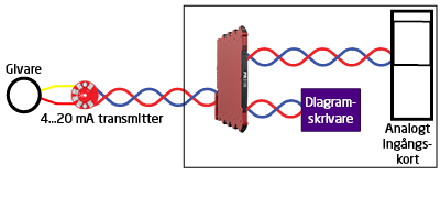 Detta görs genom att man mäter termoelement- eller RTD-signalen vid givaren och omvandlar mätningen till en 4...20 mA strömsignal. Strömmen mäts sedan av ett PLC-ingångskort som har en resistans på ungefär 250 Ω. På detta sätt elimineras fel på grund av EMI.